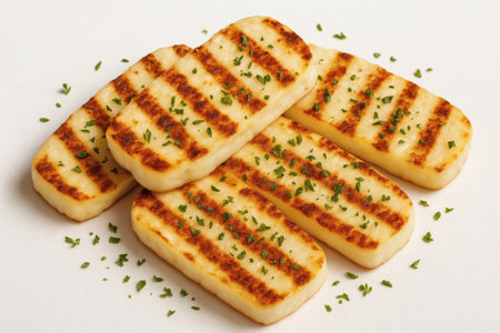 Grilled Halloumi Cheese Delicious Vegetarian Dish Isolated on White Background for Food Advertising