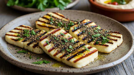 Capture the essence of Haloumi Cheese in a mouthwatering food photography shot