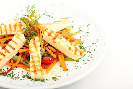 Vegetable salad with grilled halloumi cheese
