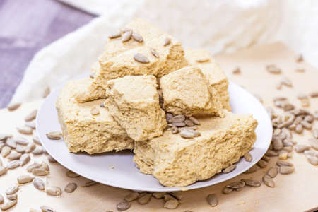 Traditional oriental dessert halva - sunflower seeds and sugar