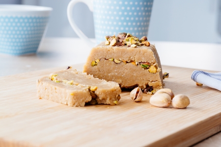 Delicious homemade sesame honey pistachio halva