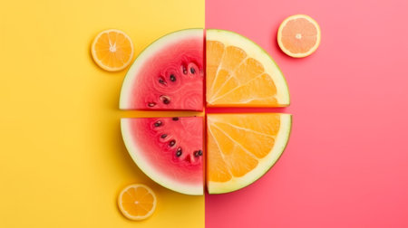 Softening watermelon cut on blue foundation with space for substance. Creative resource, AI Generated