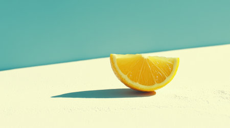 half a lemon from the right edge and a shadow of it on a mint background close-up view from above