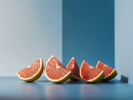 AI Generated. Grapefruit Wedges on Blue Gradient Background