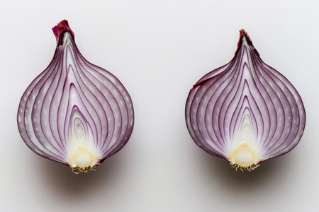 Vibrant fresh red onion halves on a crisp white background for culinary creativity and inspiration