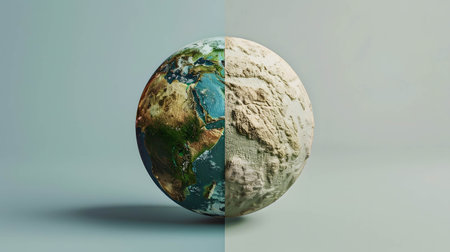 Globe or world with two side, beautiful world and dry world, business trends that care about the environment and save the world concept