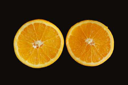 halves of a cut orange close up on a white background