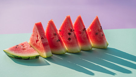 Slices of watermelon on a pink and green background.
