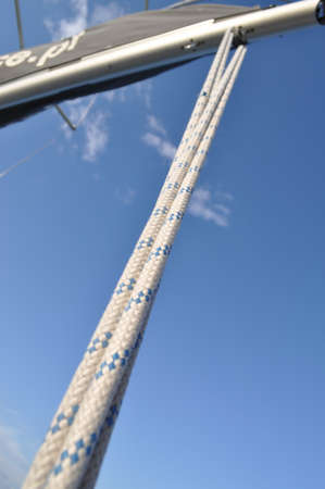 sailing ropes on a yacht close-up. line used to control the angle of the mainsail to the wind