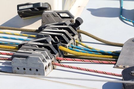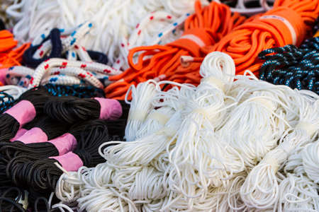 Different Nautical mooring ropes on a yacht. Horizontal shot