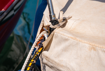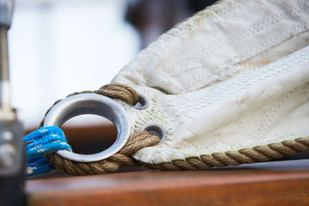 Parts and detail of sail, sailboat or yacht in port of sailing