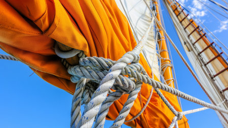A sailor skillfully tying knots on ropes and rigging demonstrating seamanship and expertise in maritime skills