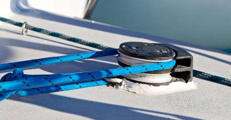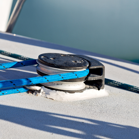 Portrait of sailboat equipment consisted of winch and rope