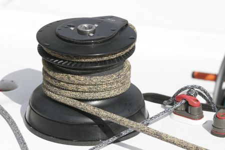 Winch with rope on sailing boat in the sea
