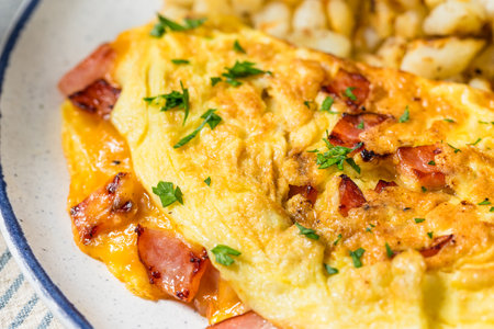 Homemade Ham and Cheese Omelette with Potatoes for Breakfast