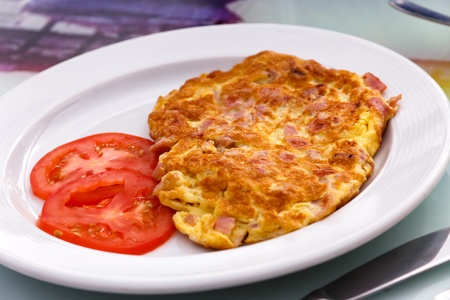 Portion of omelette breakfast with ham