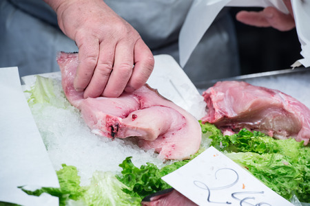 Fresh tuna at fish market Mercado dos Lavradores. Funchal, Madeira