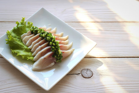 fresh raw Squid sashimi on plate, Japanese cuisine