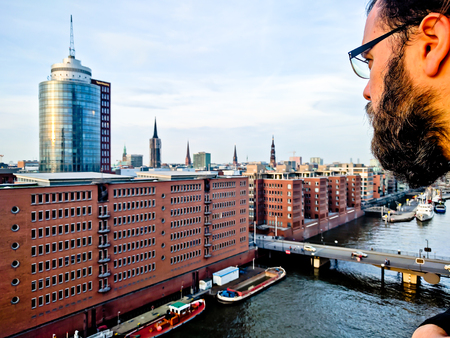 Hamburg, Germany - July 25, 2017: The houses of Kaiserkai district seen from the terrace of the Elbphilharmonie Palace
