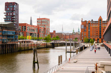 HAMBURG, GERMANY - CIRCA MAY 2017: HafenCity quarter in the district of Hamburg Mitte on the Elbe river island Grasbrook on former Hamburger Hafen (Port of Hamburg)