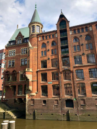 buildings and channel in the old warehouse district in Hamburg, Germany