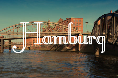 Hamburg, Germany. City name photo postcard. Travel destination text word card.