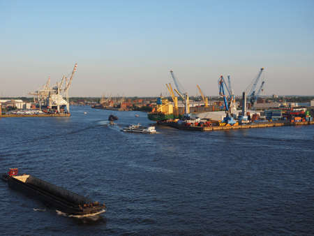 HAMBURG, GERMANY - CIRCA MAY 2017: Hamburger Hafen (Port of Hamburg) sea port on the river Elbe