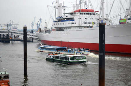 Street view of Cruise ship in the harbor of Hamburg