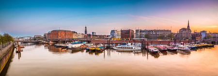 Panorama of Hamburg Hanseatic port city Germany, Europe.