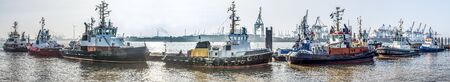 Tugboats in a Row at Port of Hamburg