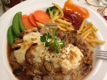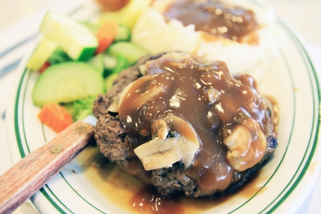 Hamburg steak with teriyaki sauce in Tokyo, Japan