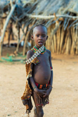 Omo Valley, Ethiopia - September 2017: Unidentified girl from the tribe of Hamar in the Omo Valley of Ethiopia