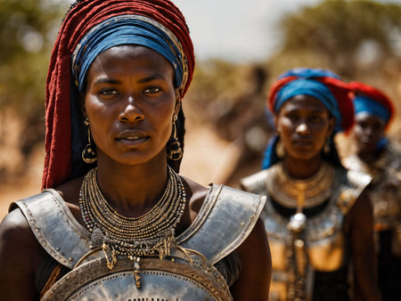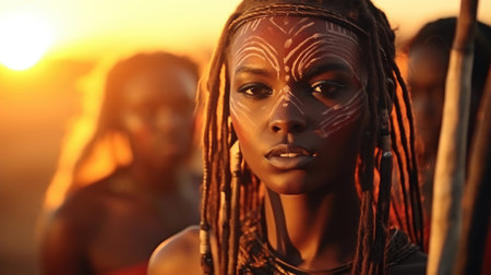 photo of african woman tribal warriors with armor, generative AI