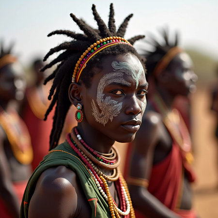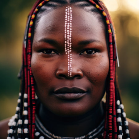 Maasai woman and traditional beaded adornments reflecting her identity.