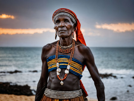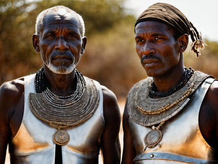 photo of african old people tribal warriors with armor, generative AI