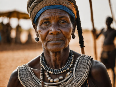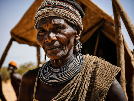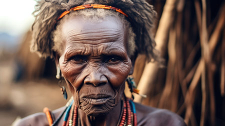 Serious senior woman from tribe in a village, Ancient tribes.