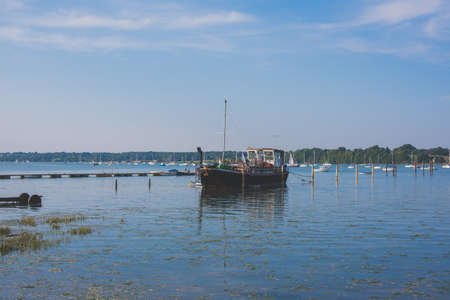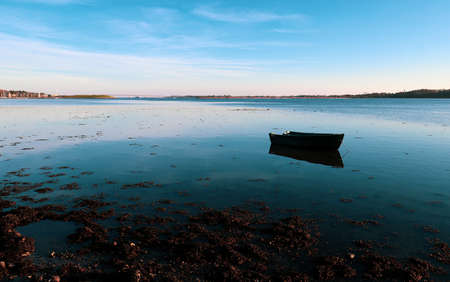 Lonely boat in Roskilde fjord of Denmark during sunset