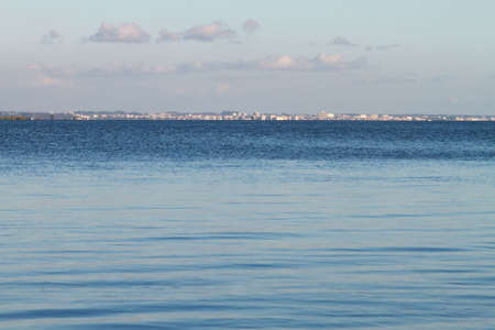 Texture of the background of seawater near the shore. The surface of the seawater near the shore as an abstract background. Abstract background of rippling waves in ocean water