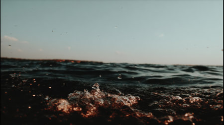 A tranquil scene showcasing gentle waves on a water surface with glimmering sunlight creating a captivating and serene atmosphere perfect for relaxation and inspiration.