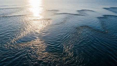 Discover a serene water surface adorned with gentle ripples and vibrant light reflections, ideal for evoking tranquility and natural beauty in imagery.