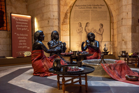 GAZIANTEP, TURKEY - OCTOBER 25, 2021: Gaziantep Hamam Museum in Gaziantep. Is one of the finest examples of Ottoman hamam architecture and culture.