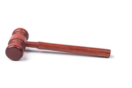 studio lighting. a hammer for pronouncing the verdict in court. On a white background