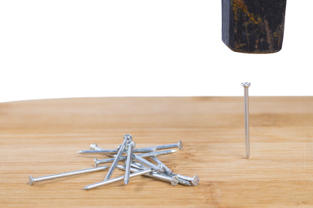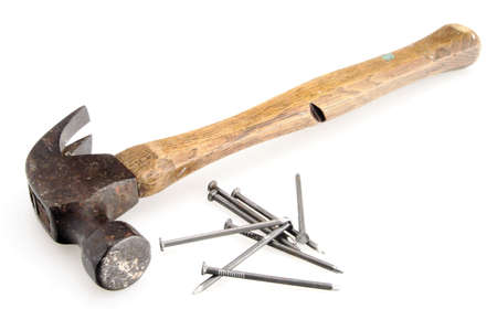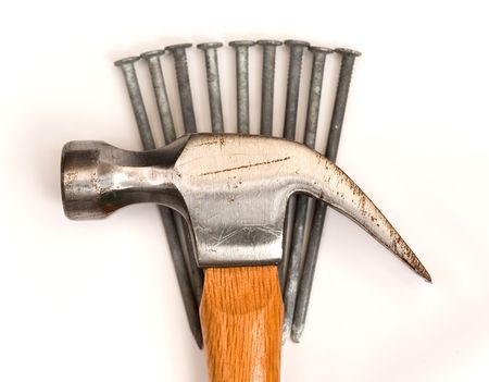 Hammer and nail on white background