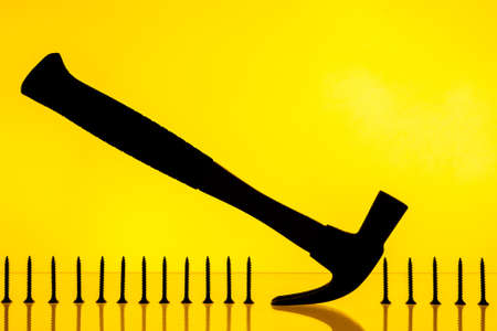 Modern Hammer and Nails on a Vibrant Yellow Background.