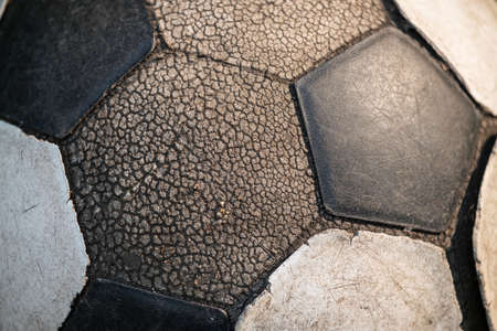 Old soccer or football ball closeup textured pattern background.