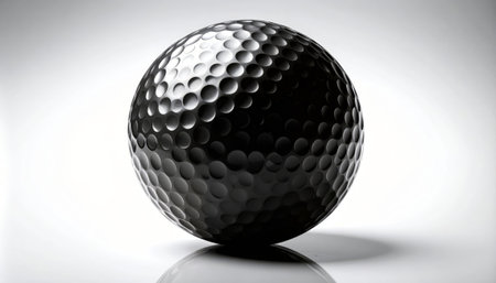 The elegant simplicity of a black golf ball displayed on a black backdrop, creating a striking and bold visual.