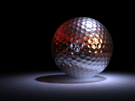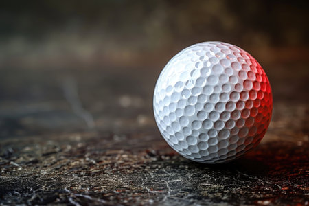 Closeup of a golf ball on a solid stone surface with a red spotlight