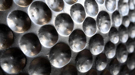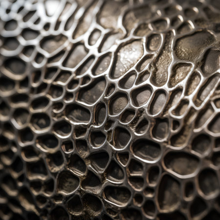 Sophisticated digital artwork showcasing intricate surface detailing and nuanced light interplay for a moody industrial vibe. Ideal for enhancing luxury product prototypes, architectural renders, premium packaging designs, and metallic element graphics in creative industries. Precise execution of texture depth and tonal subtlety provides versatile asset for designers... AI-generated illustration.