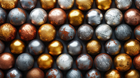 Multi-colored background illustration in the form of balls made of different metals,Generated by AI