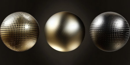 Gold spherical carbon textures with a reflective, metallic surface. Luxurious and futuristic patterns ideal for premium designs.